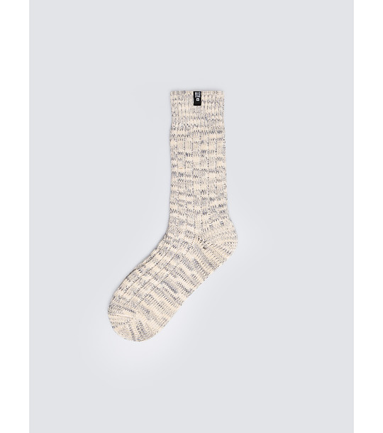 Șosete unisex tricotate cu o croială lungă până la jumătatea gambei. Tricotaj vertical în relief pe toată lungimea. Margine elastică lată în partea de sus. Întăriri în zona vârfului și a călcâiului. Etichetă mică din material textil cu sigla mărcii în partea de sus.