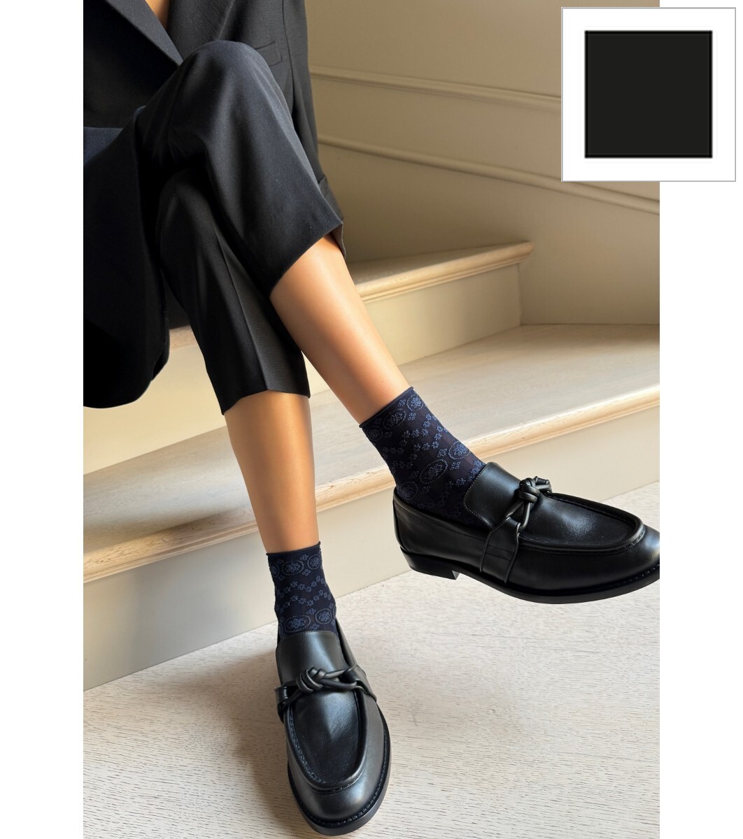Șosete negre cu motiv floral FABIENNE