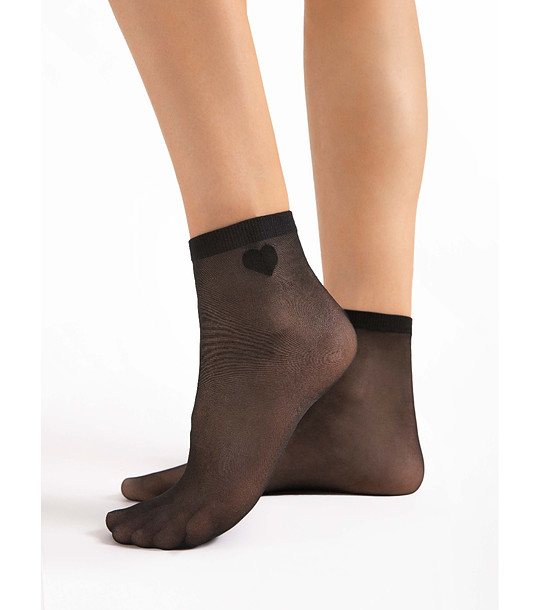 Șosete subțiri transparente până la gleznă cu inimă decorativă pe lateral. Elastic superior. Cusătură fină și densă pe vârfuri.