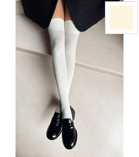 Veneziana Șosete peste genunchi de culoare crem pentru femei, cu model BOCARO