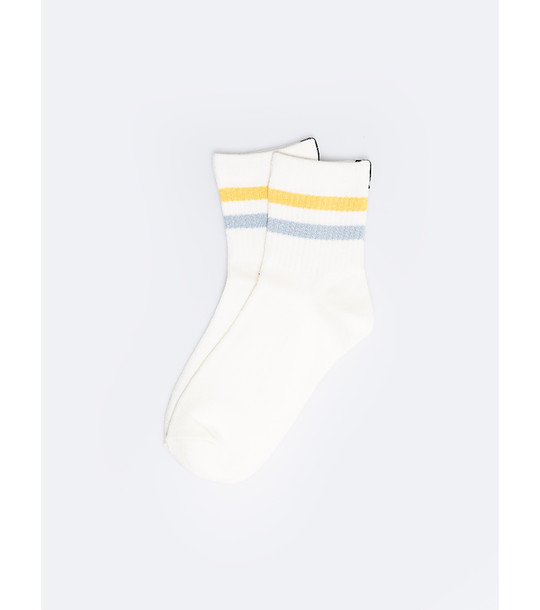 Șosete scurte albe din bumbac pentru femei, cu dungi contrastante