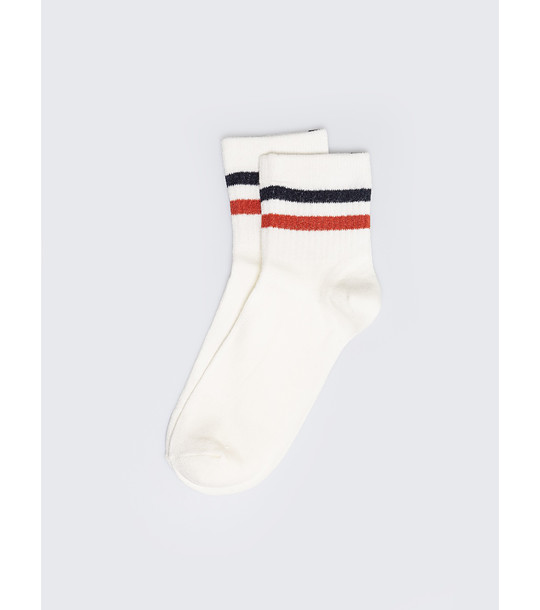 Șosete scurte de damă din bumbac cu dungi în partea de sus