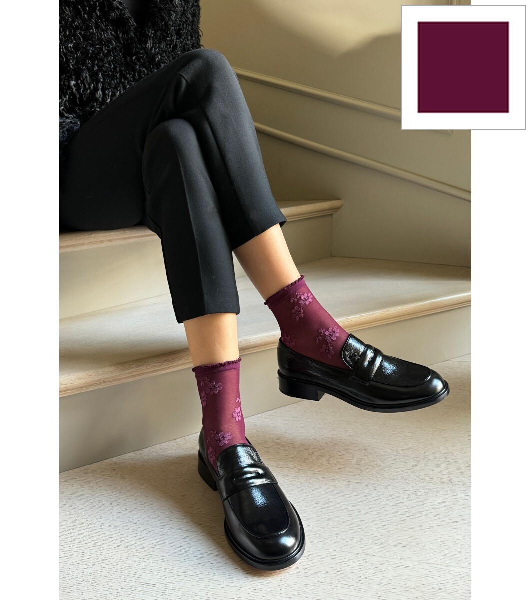 Șosete vișinii pentru femei cu model floral FIORELLA