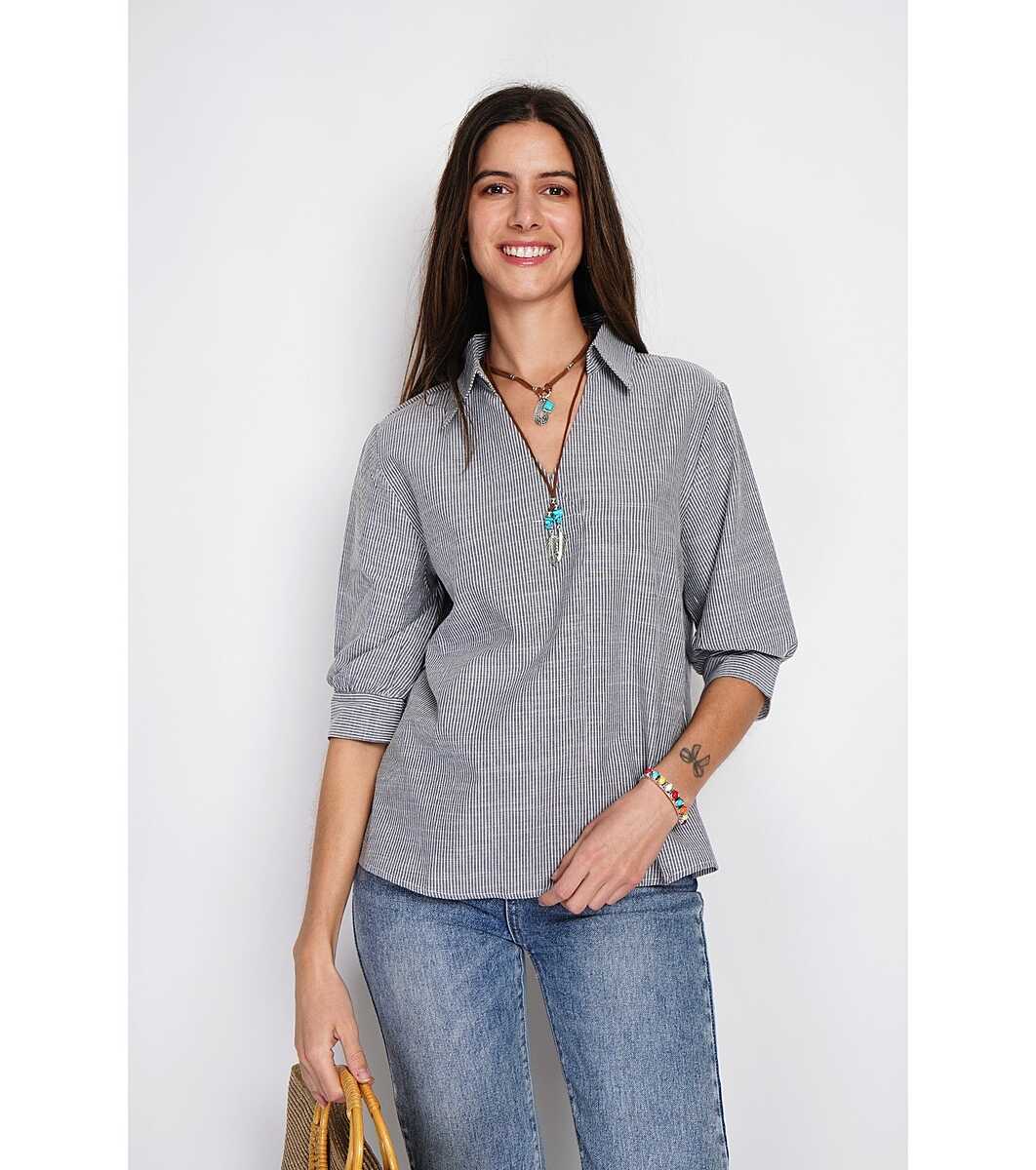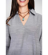 Top cu guler de camasa, incrucisat fata, trapez cu maneci 3/4