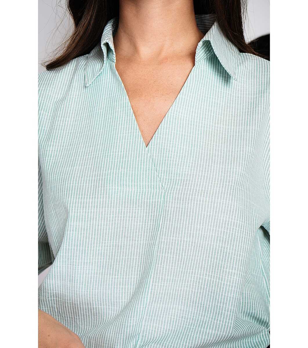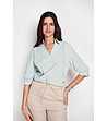 Top cu guler de camasa, incrucisat fata, trapez cu maneci 3/4