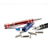 8 capete de șurubelniță, Phillips și plată, incluse.